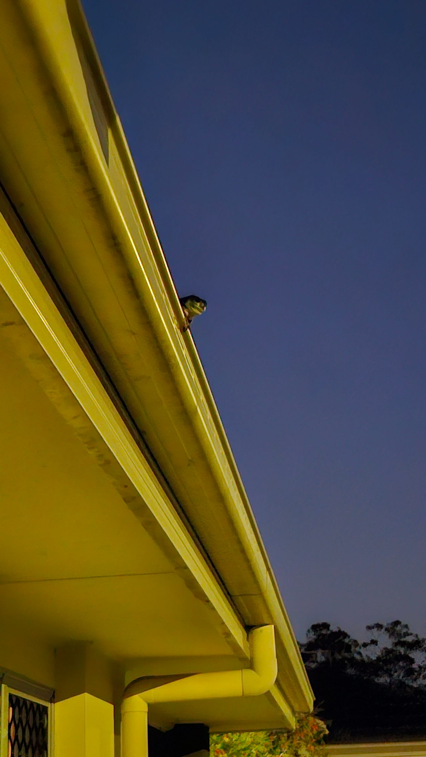 Still no toads, (although Doll did point out a very flattened one on the road while we were strolling this week) but we were thrilled to spy a frog in our gutter!