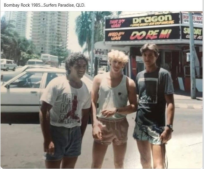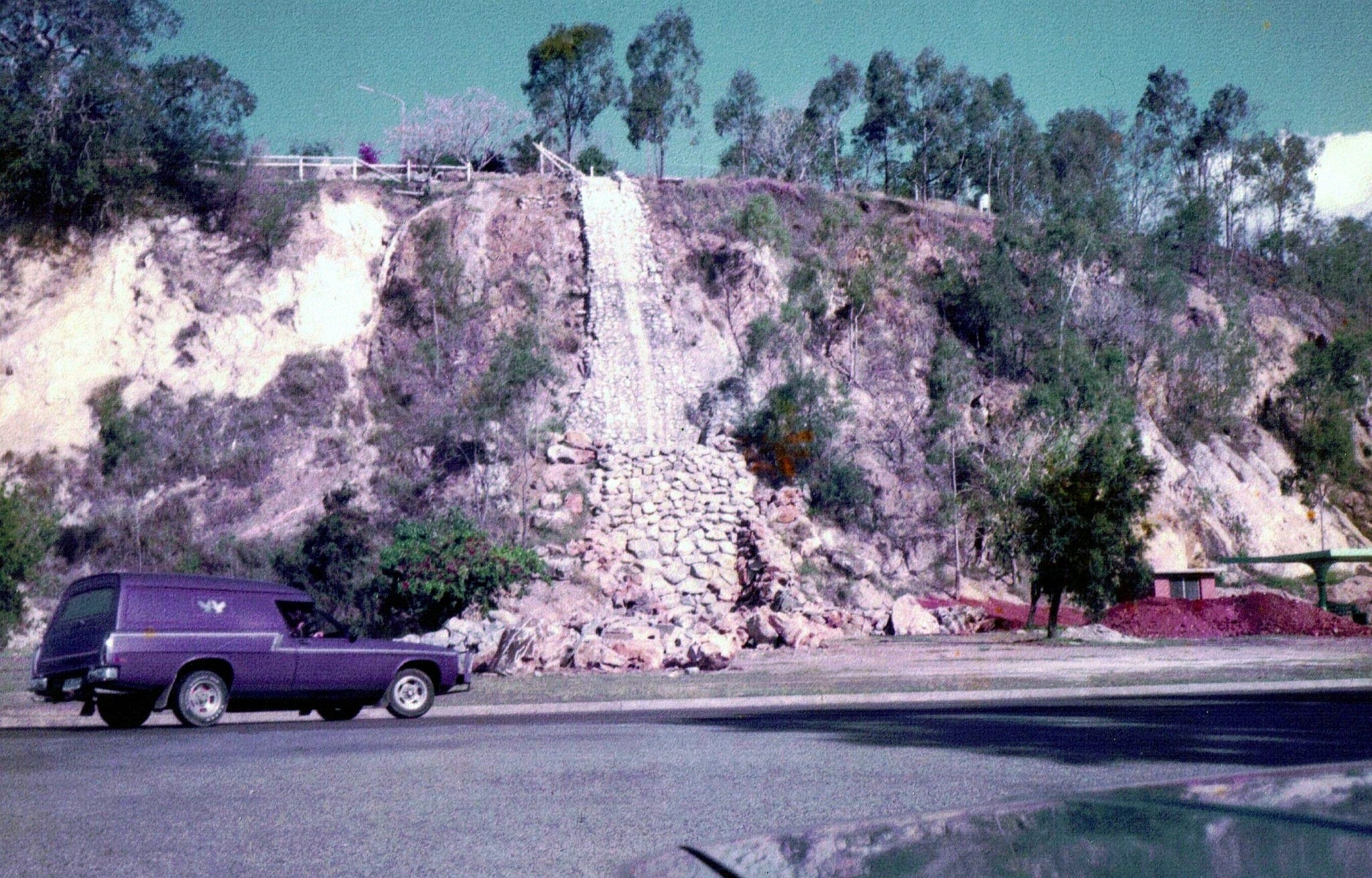 A little history lesson, folks, this was my mate Sutty’s car, in front of the waterfall at the Gladstone waterfront just after the maniacs from Rotary used a bosun’s chair and a bucket to build the waterfall, and plant trees and shrubs, on Auckland Hill: