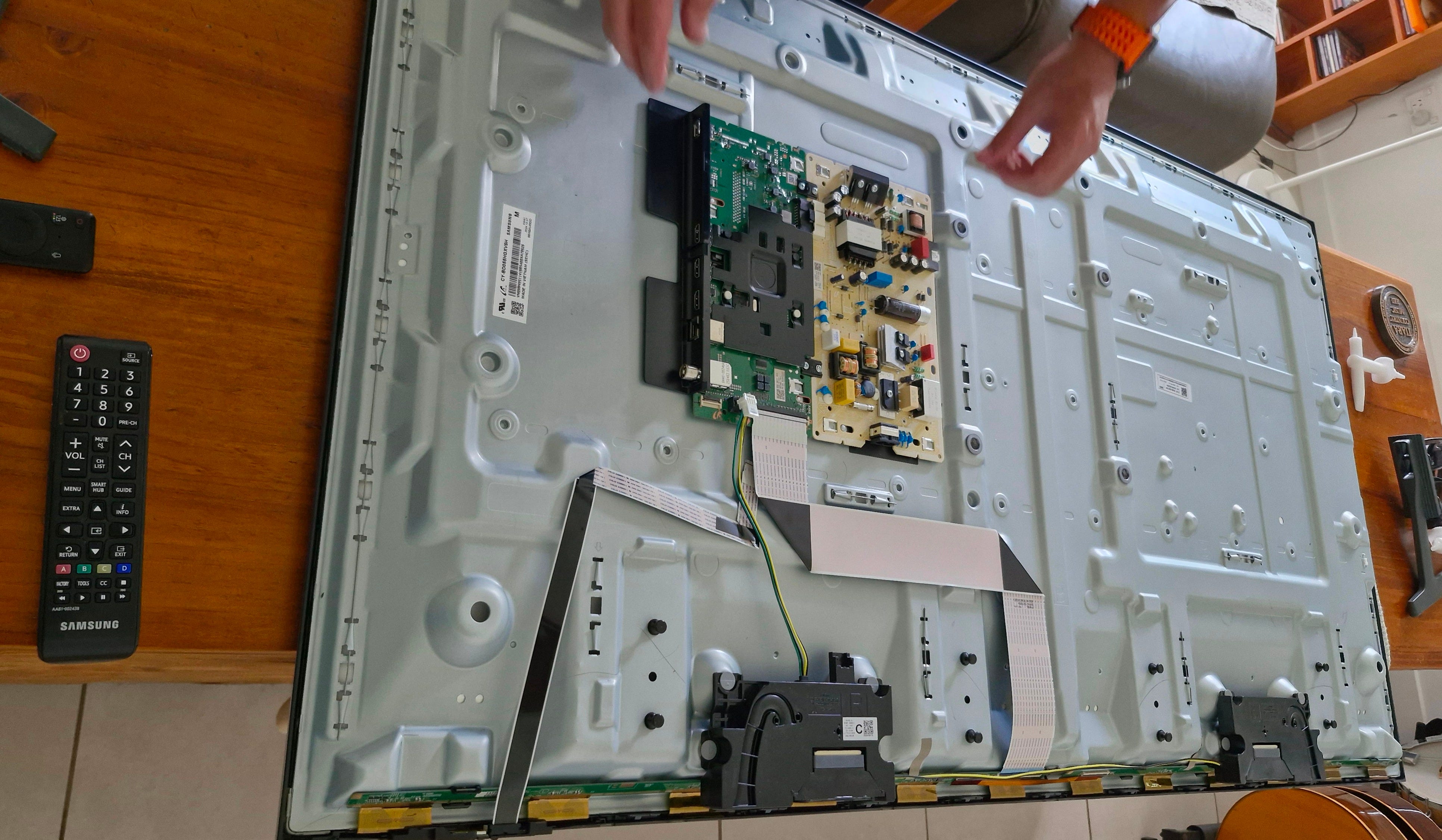 Anyway, after whipping the plastic back off the tele, he replaced the motherboard and… Voila! No picture!